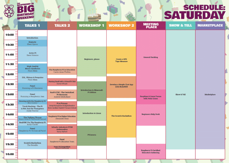 The Raspberry Pi Big Birthday Weekend seems to have been a tremendous success. It went as smoothly as it could possibly have done and we received some great verbal feedback throughout the weekend. Here is my personal account of the set-up and running of the biggest Pi-related event ever.